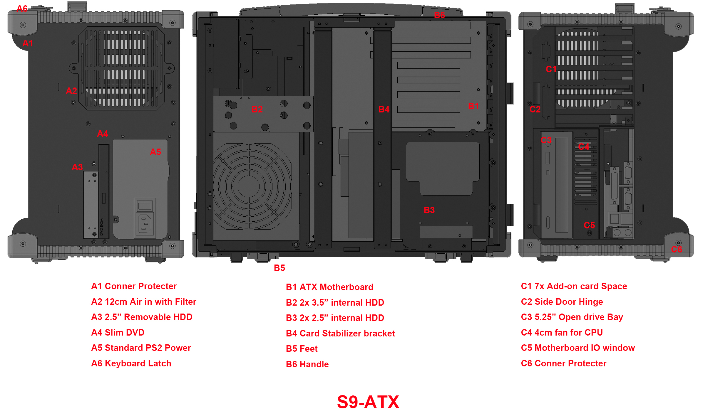 以前我們的可攜式電腦的型號需要特殊的定制電源。 使用Spark-S9,任何標準的台式電源都將適合這種機箱,因此您可以滿足現在和將來不同主板的不同功率需求。
