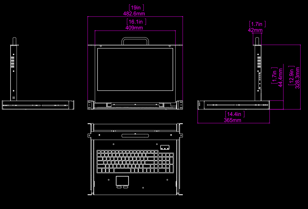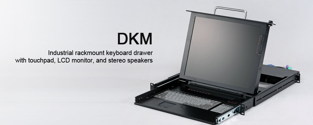 DKM系列僅使用1U或2U機架空間,在堅固的機架式抽屜中將鍵盤、觸控板與Active Matrix LCD顯示器和一對擴音喇叭包含滑軌組合在一起,該系列可以適合任何標準機架機箱,深度從16.25“到36”。 這些可以為您節省寶貴的機架空間,以優化和最大限度地使用機架。 可以拉出13″的短距離,充分的拉出機架,並將液晶顯示器拉高到舒適的觀看位置。在不使用時,可將抽屜方便地收回。