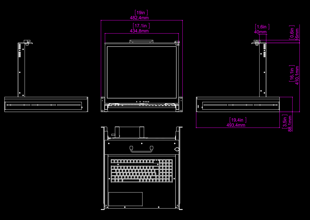DKM系列僅使用1U或2U機架空間,在堅固的機架式抽屜中將鍵盤、觸控板與Active Matrix LCD顯示器和一對擴音喇叭包含滑軌組合在一起,該系列可以適合任何標準機架機箱,深度從16.25“到36”。 這些可以為您節省寶貴的機架空間,以優化和最大限度地使用機架。 可以拉出13″的短距離,充分的拉出機架,並將液晶顯示器拉高到舒適的觀看位置。在不使用時,可將抽屜方便地收回。
